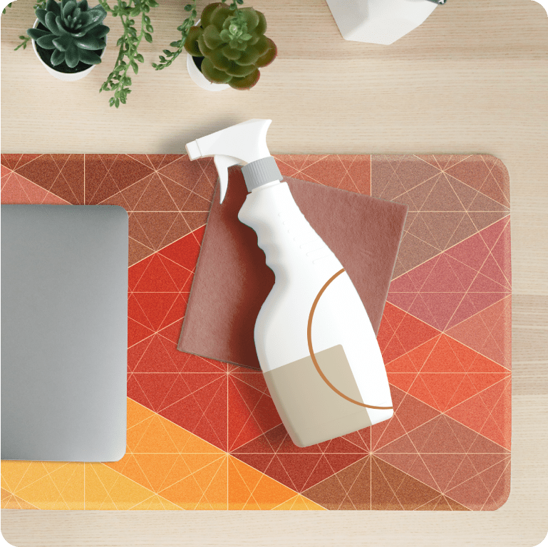 Protect your desk space in style and colorful with the Cuben Fibre Desk Pad. Crafted from quality, easy to clean, micro-weave cloth surface and natural rubber bottom, the Desk Pad can be used as a mouse pad, writing surface, food mat and more, while complementing a variety of modern desk setups.