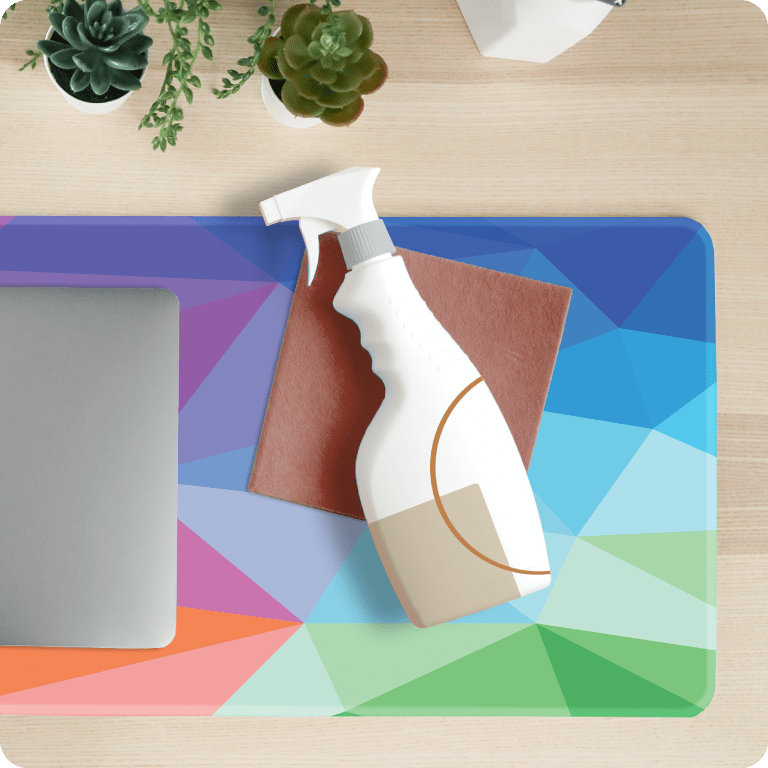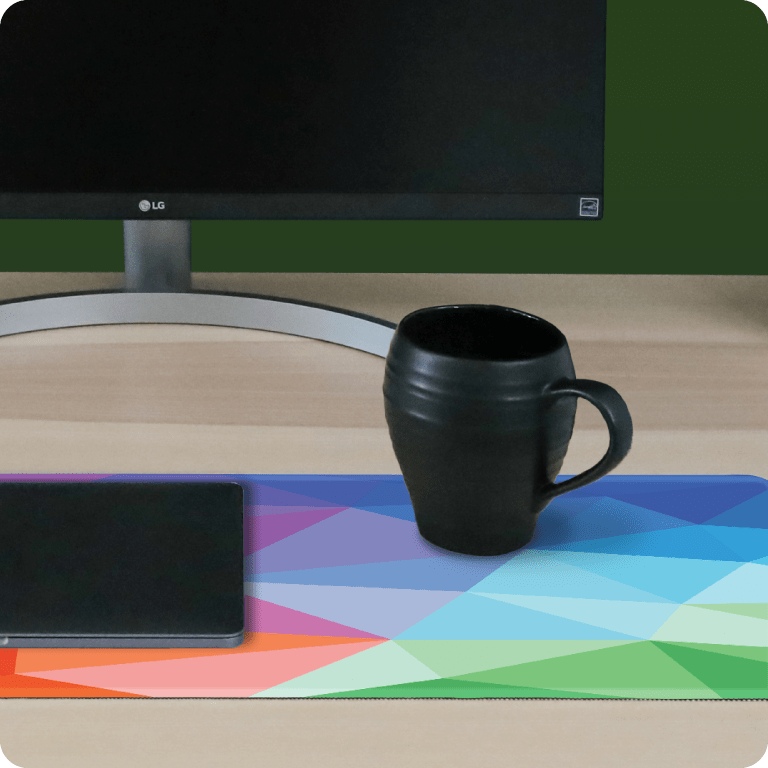 Protect your desk space in style with the Seven Colors Desk Pad. Crafted from premium quality, easy to clean, micro-weave cloth surface and natural rubber bottom, the Desk Pad can be used as a mouse pad, writing surface, food mat and more, while complementing a variety of modern office setups.