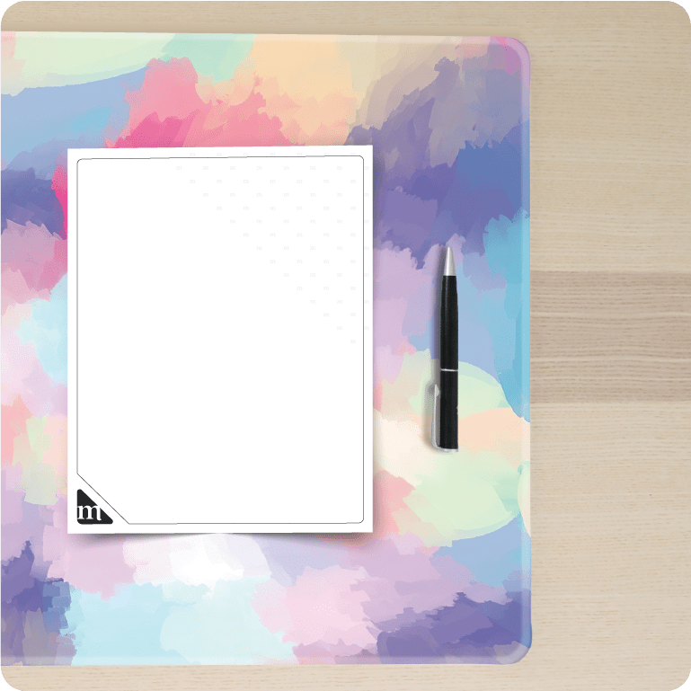 Protect your desk space in style with the Watercolor Desk Pad. Crafted from quality, easy to clean, micro-weave cloth surface and natural rubber bottom, the Desk Pad can be used as a mouse pad, writing surface, food mat and more, while complementing a variety of modern desk setups.