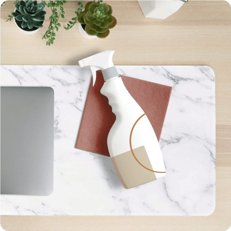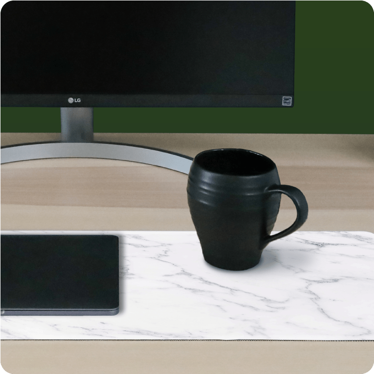 Protect your desk space in style with the Marble Grain Desk Pad. Crafted from quality, easy to clean, micro-weave cloth surface and natural rubber bottom, the Desk Pad can be used as a mouse pad, writing surface, food mat and more, while complementing a variety of modern desk setups.