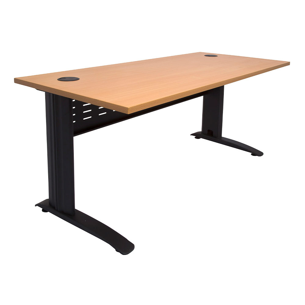 The Rapid Span Straight Desk is a versatile desking system available in a range of sizes and colour combinations. The 25mm E1 grade melamine top is available in beech or white, while the sturdy metal powdercoated frame is available in black, white or silver. With a perforated modesty panel, included cable entry holes and adjustable levelling feet, the Rapid Span Straight Desk is a great all-rounder for your workspace.