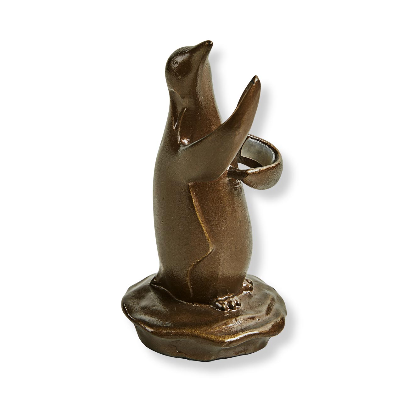 Cast in aluminum with a glimmering hand-painted bronze finish with gold highlights, our Penguin Pen Stand beautifies your deskscape and keeps your pen right at hand. This expressive penguin holds your pen of up to 1/2" in diameter cradled gently in its flippers until you’re ready to start writing.